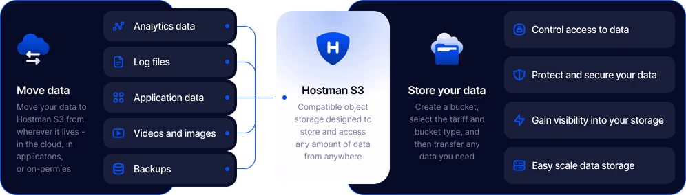 Use Hostman’s web interface to create, organize, and monitor your buckets and files in just a few clicks.